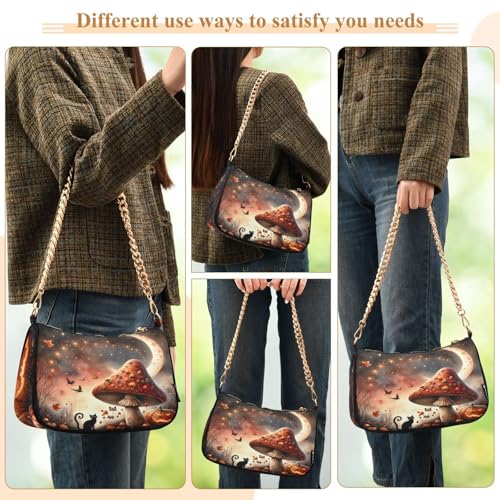 HOT ! Watercolor Halloween Mushroom Shoulder Bag for Women, Handbag with Chain Strap, Soft Purse Tote Bag for Ladies