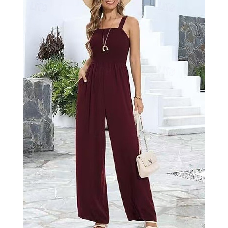 More information about Women's Normal Jumpsuit Streetwear Solid Color Sleeveless U Neck Pocket Street Daily Regular Fit Black Wine Navy Blue Summer