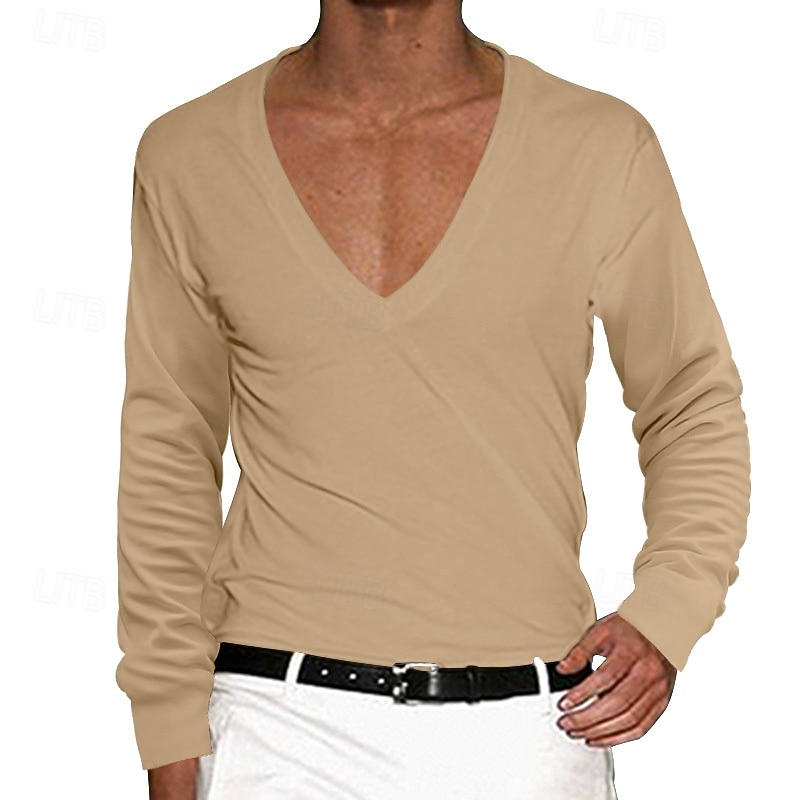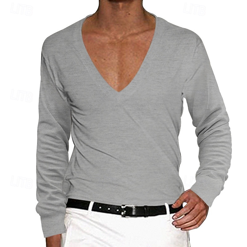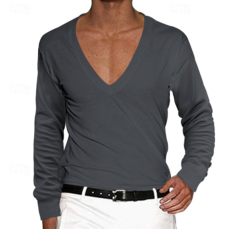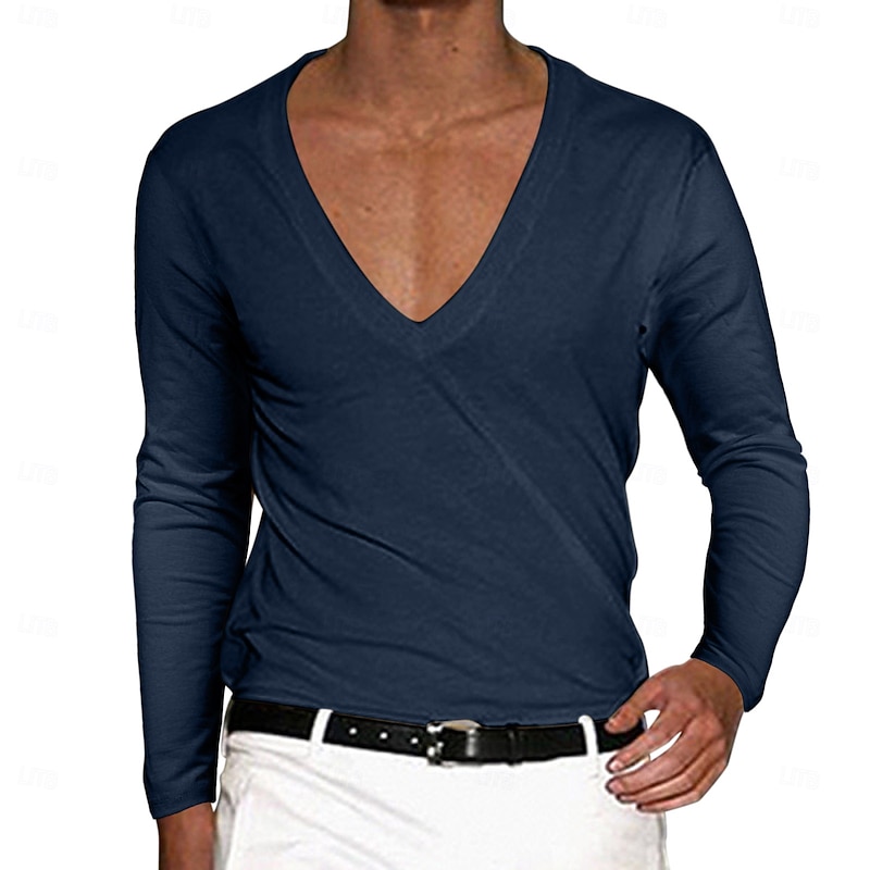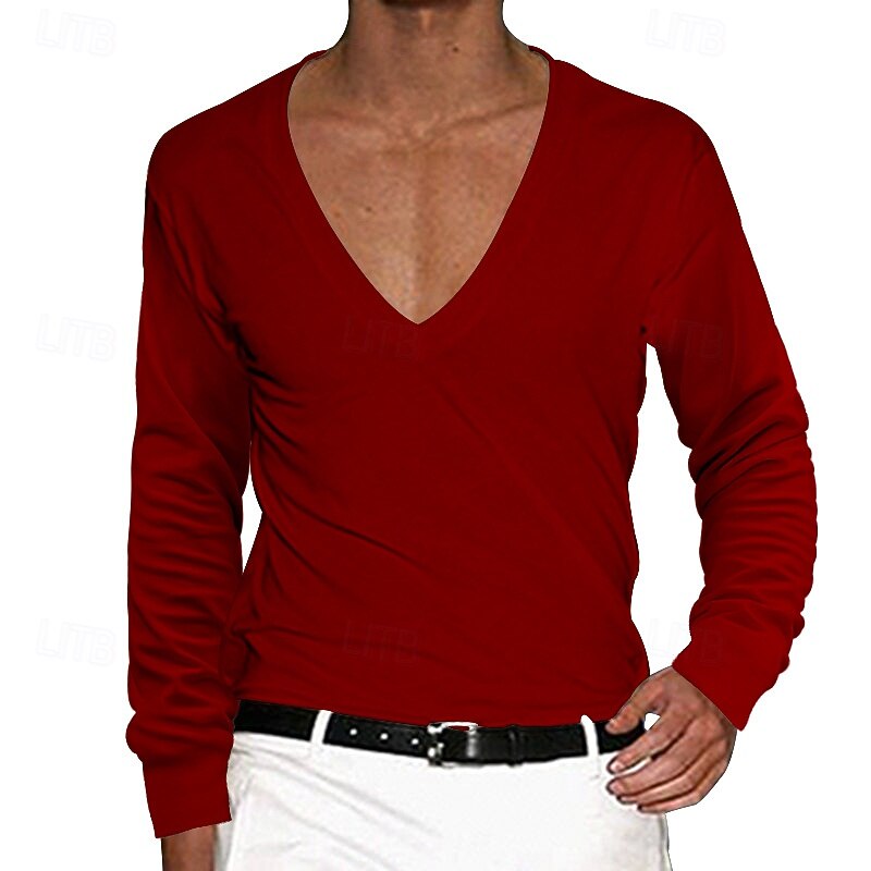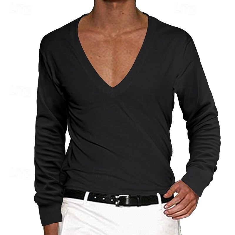 More information about Men's T Shirt Tee Top Long Sleeve V Neck Summer Solid Color Plain Fashion Designer Basic Deep V Basic Vacation Street Casual Black White Red Top Tee for Men