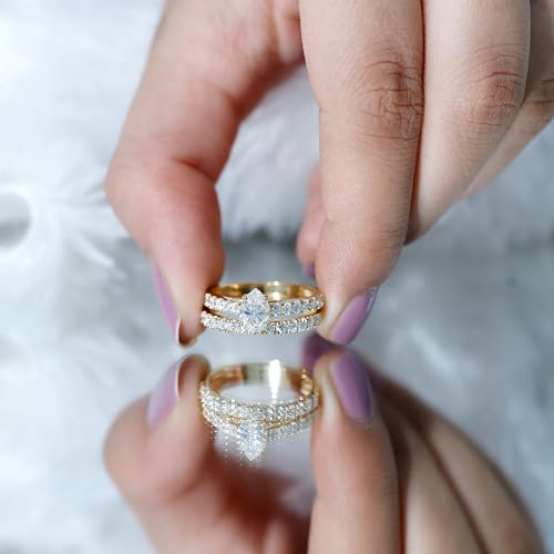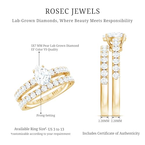 HOT ! Certified Lab Grown Diamond Wedding Ring Set, Ef-Vs Quality, 5X7mm Diamond Engagement Ring With Enhancer - Ready To Gift