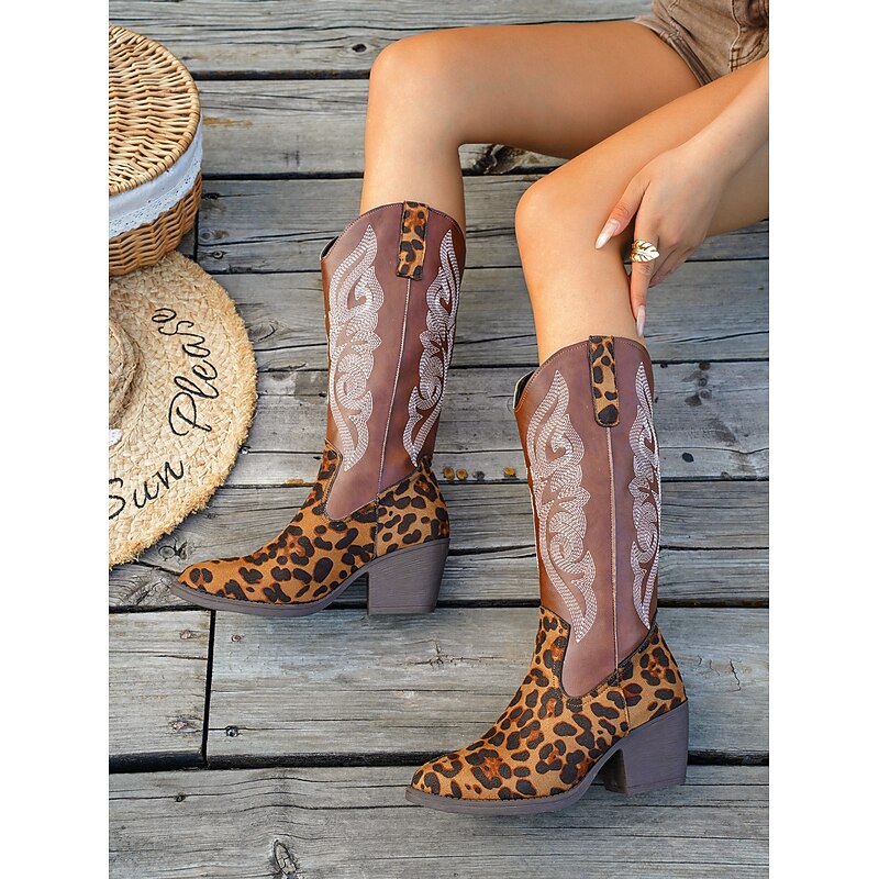 Women's Leopard Print Western Cowboy Boots – Embroidered Knee High Block Heel Cowgirl Boots for Rodeo, Country Concerts & Fall Outfits 3
