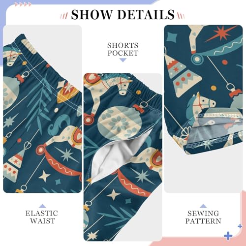 Boys' Pants Hristmas Noel Bauble Tree Branche Rocking Horse Long Bottoms Elastic Waist Trousers with Pockets S-XL 1