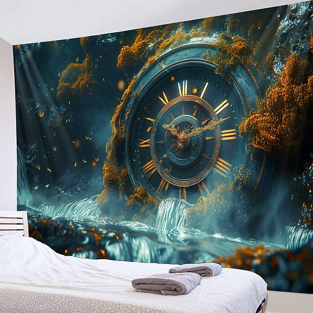 Clock Waterfall Hanging Tapestry Wall Art Large Tapestry Mural Decor Photograph Backdrop Blanket Curtain Home Bedroom Living Room Decoration 28