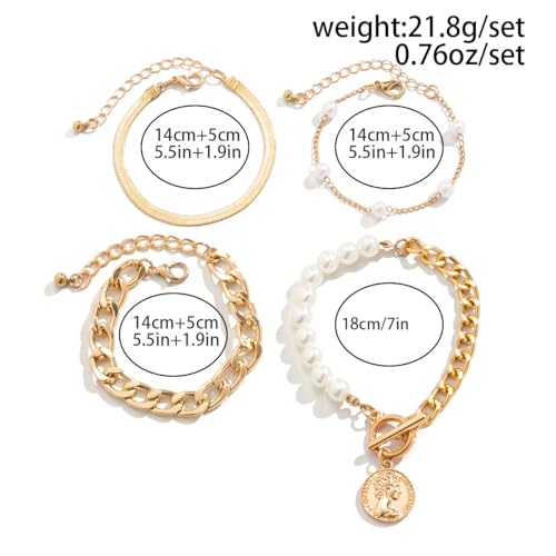 HOT ! Chunky Gold Bracelets for Women Trendy Stacked Chunky Pearl Bracelets Golden Pearls OT Clasp Bracelet Chain Portrait Pendant Bracelet Gold and Pearl Pirates Jewelry Set