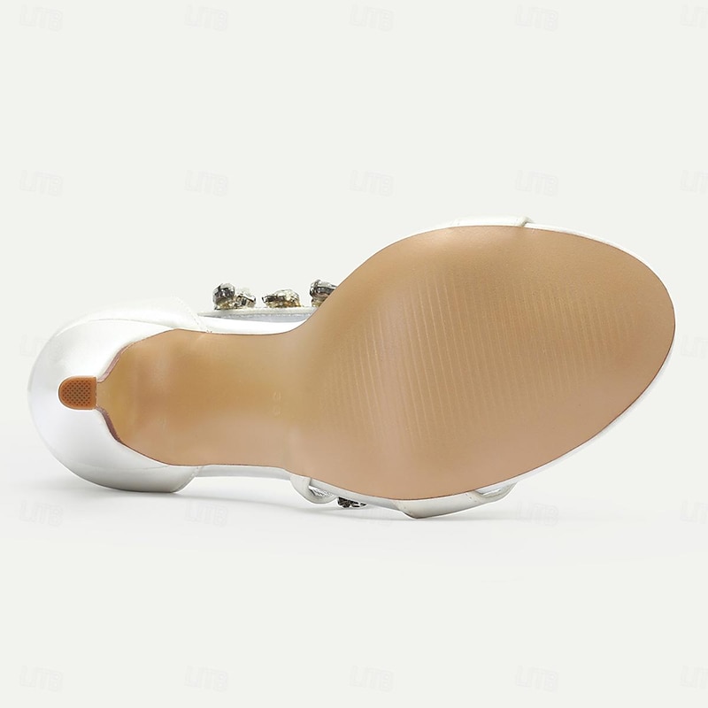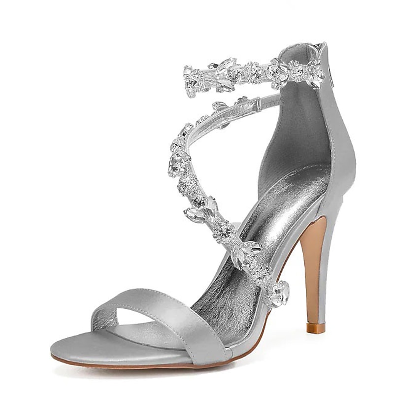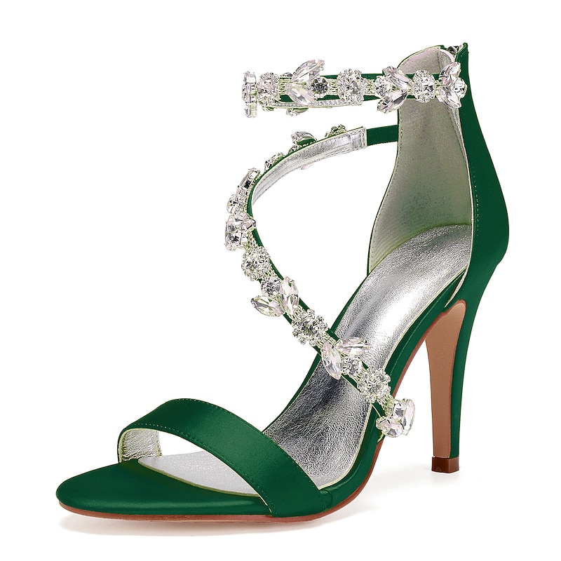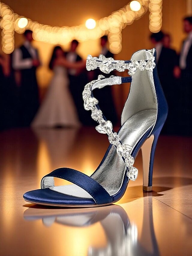Highlights [Fabric and Fit] : These Women's Navy Satin Bridal Stiletto Heels are crafted from luxurious satin that gives an elegant sheen, perfect for adding a touch of sophistication to any bridal ensemble. The stiletto heel enhances the silhouette, providing both height and poise, while the open-toe design offers modern elegance. [Design Highlights] : The rhinestone embellishments on the slim ankle strap add a sparkling touch of glamour, making these shoes a standout choice for any formal occasion. The inner lining, made from soft, glossy material, ensures a comfortable and secure fit for extended wear, while the zipper closure adds convenience and a streamlined look. [Occasions] : Perfect for weddings, evening events, and other formal occasions. Whether attending a romantic ceremony or a high-class gala, these heels are sure to enhance your outfit with charm and grace. [Size Range] : Available in a comprehensive size range from US5 to US13, these heels are designed to cater to a variety of foot sizes, ensuring that every woman can find her perfect fit. These elegant bridal shoes, available in a range of colors such as White, Black, Silver, Dark Blue, and more, are poised to become a favorite for 2024 trends in stilettos and sparkling shoes.