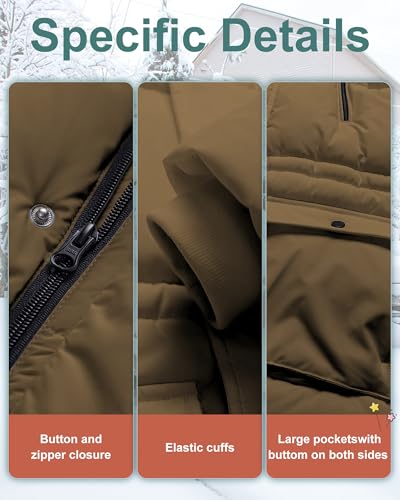 • More Details:zipper and button closure with fur hood.Windproof elastic cuff,Metallic puffer coat keep you warm.Two front slant pockets with zip(plush interior).Detachable fur hood,Windproof cuffs,Zipper and button closure.Hand pockets warm chilled fingers and secure essentials