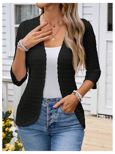 GORGLITTER Women's Open Front Knit Cardigan 3/4 Sleeve Lightweight Office Business Dressy Sweater Jacket Outerwear 3