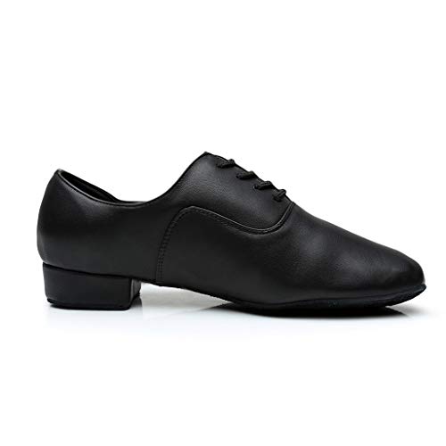 Men Leather Loafers Low Heel Slip On Business Work Shoes for Ballroom Tango Comfortable Lace Up Dance Shoes 6
