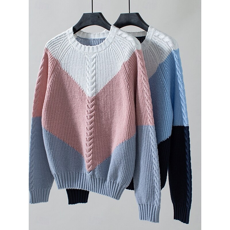More information about Women's Sweater Casual Soft Color Block Ribbed Crew Neck Knitted Long Sleeve Regular Tops Knit Outdoor Daily Weekend Pink Blue Fall Winter