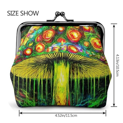 HOT ! Kiss-Lock Coin Purse For Women Change Purses Small Coin Pouch Mini Change Holder Tiny Coin Wallet (magic mushrooms (2))