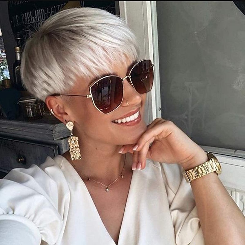 $20.99 - Short Pixie Cuts Hair Wigs Ombre Platinum Blonde Natural Straight Heat Resistant Synthetic Wigs with Bangs Natural Daily Use Wig 2025. Shop for cheap Older Wigs online? Buy at lightinthebox.com on sale today!