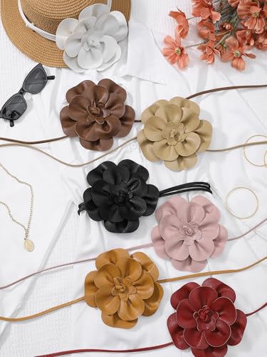 Women's Flower Waist PU Leather Belt Boho Skinny Rope Waist Dress Belt for Dress Concert Dating Party Outfit 6