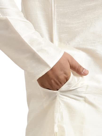 More information about Sojanya Men's Silk Blend Off White Kurta & churidaar Pyjama Silk Blend Nehrujacket Set