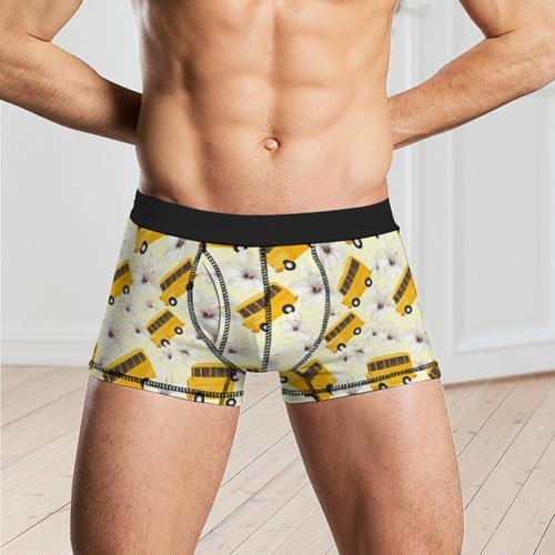 School Bus Hawaiian Men's Boxer Briefs Soft Underwear Breathable Trunks with Waistband 1