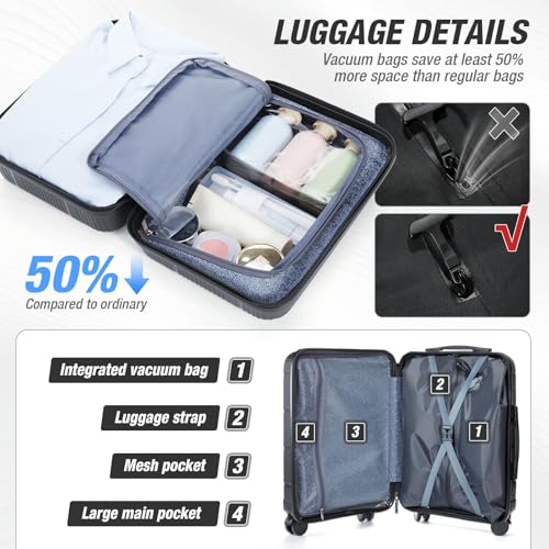 Vacuum Compression Carry On Luggage 22x14x9 Airline Approved,20-Inch Small Carry On Vacuum Travel Luggage With Wheels And TSA Lock,Lightweight Durable Hard Shell Suitcases With Pumps,Black 7