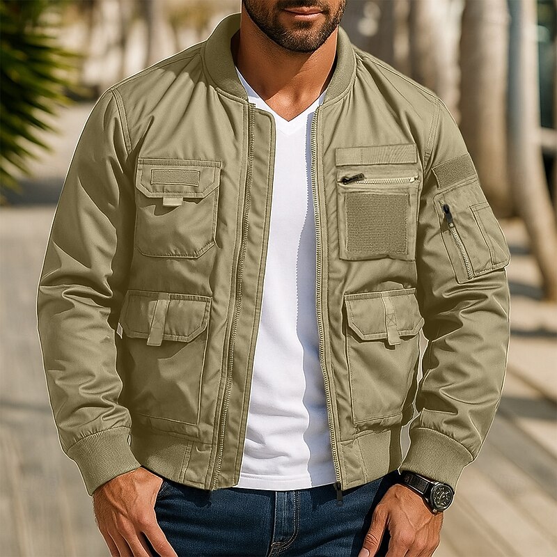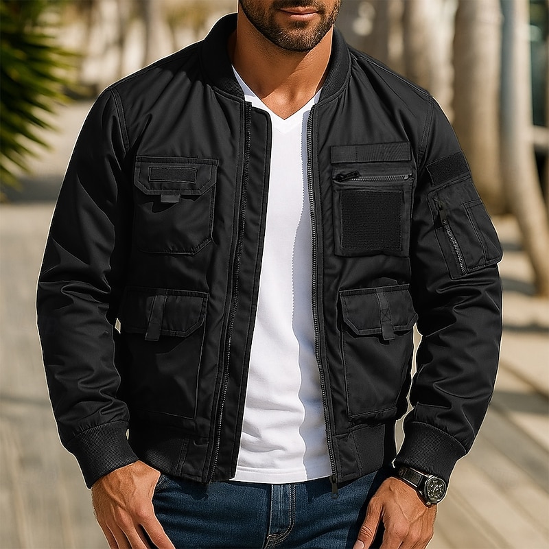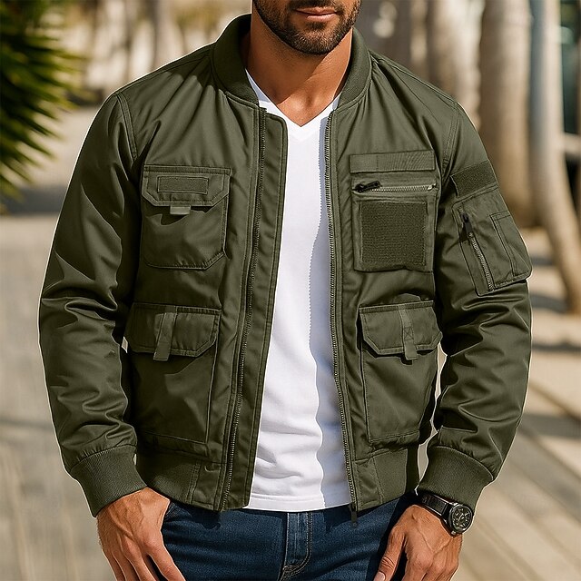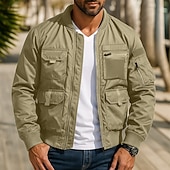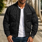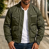 More information about Men's Bomber Jacket Military Jacket Sport Coat Varsity Jacket Sports Outdoor Casual Waterproof Windbreaker Zipper Pocket Spring Fall Winter Solid Color Active Hooded Regular Black Navy Blue Khaki