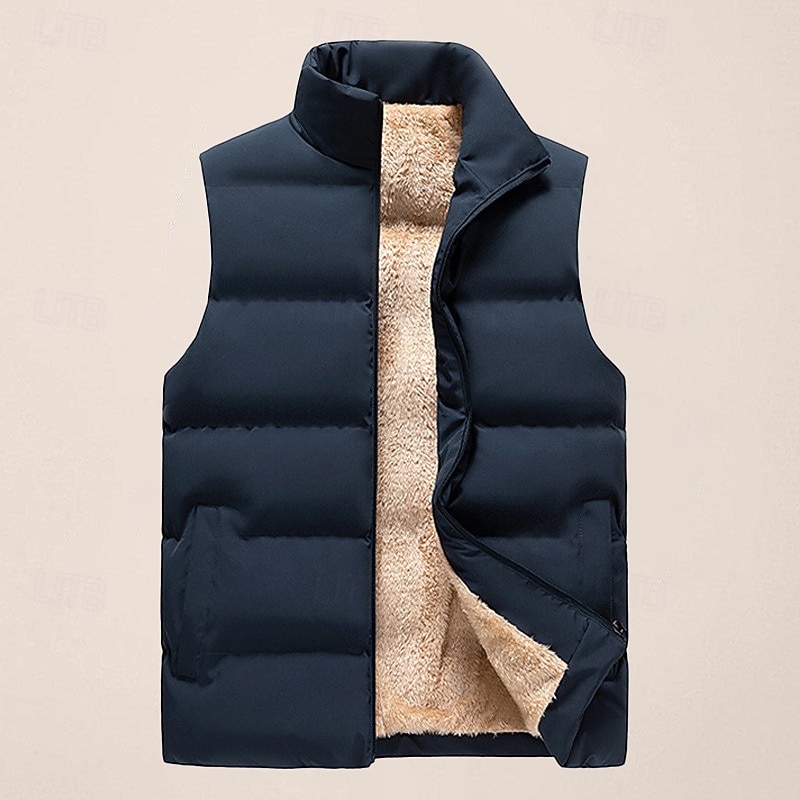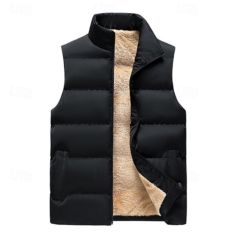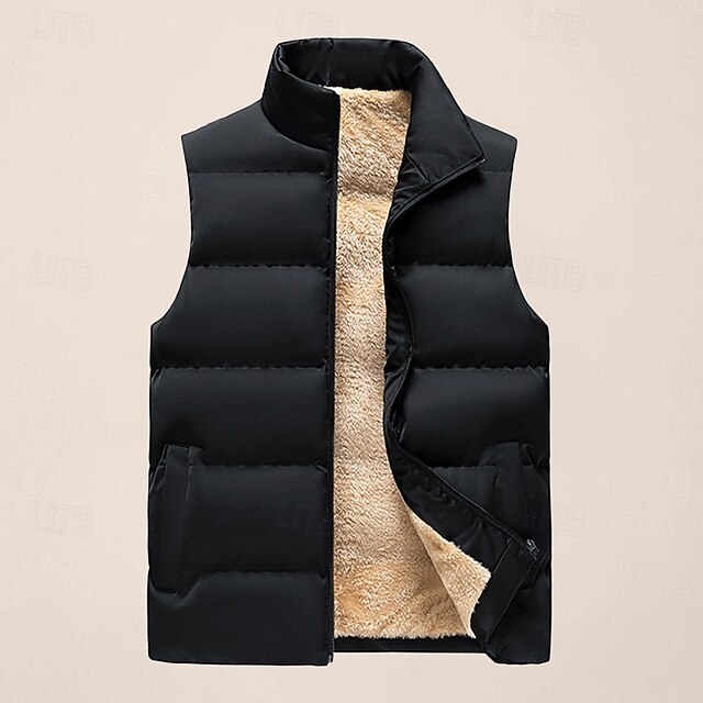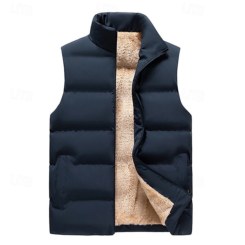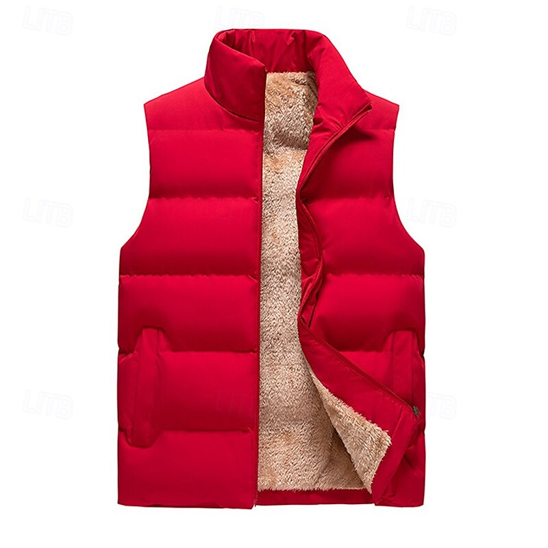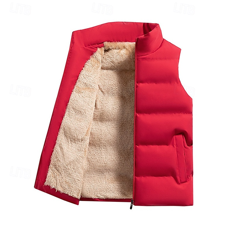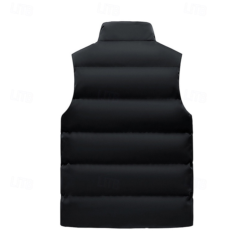 More information about Men's Puffer Vest Daily Casual Spring & Fall Pocket Polyester Comfortable Solid Color Zipper Stand Collar Regular Fit Black Red Dark Blue Vest