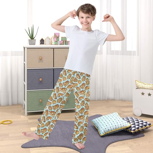 HOT ! Pajama Pants Yellow Leopard Blue Pattern PJ Bottoms Sleepwear Lounge Sleep Pant with Pockets