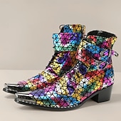 More information about Men's Rainbow-Patterned Boots with Reflective Texture – Stylish and Colorful Shoes for Festivals, Parties and Fashion Enthusiasts