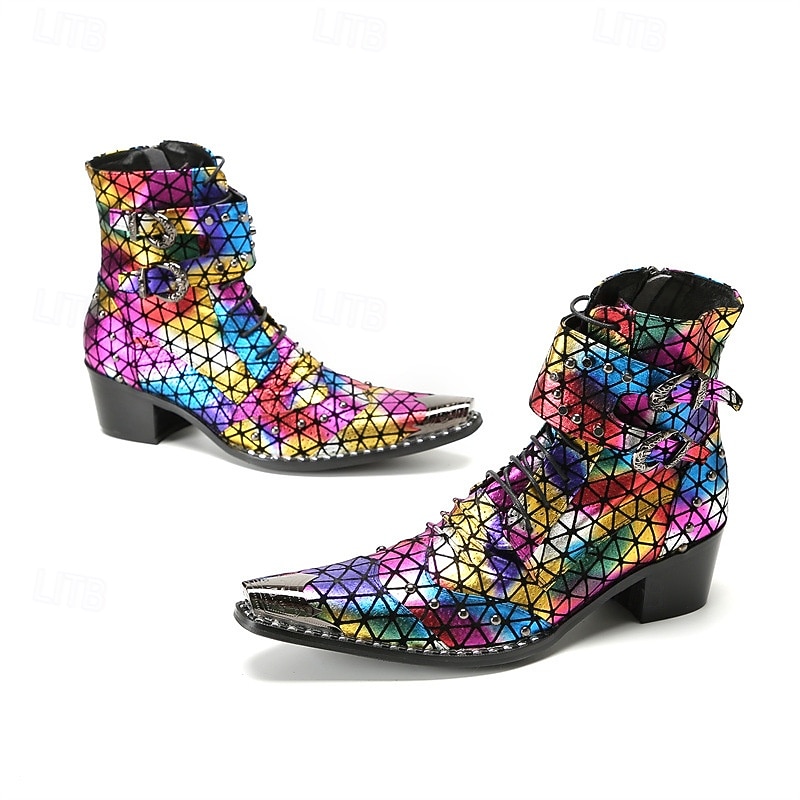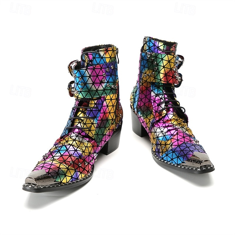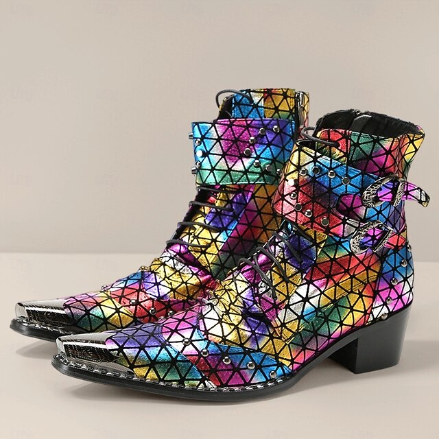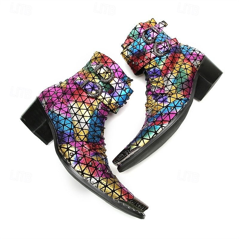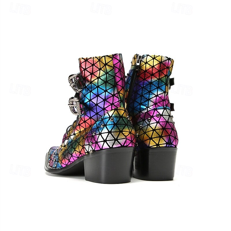 Men's Rainbow-Patterned Boots with Reflective Texture – Stylish and Colorful Shoes for Festivals, Parties and Fashion Enthusiasts 1