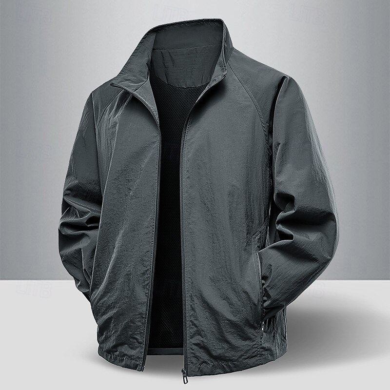 Men's Jacket Casual Jacket Outdoor Vacation Warm Zipper Pocket Fall Winter Plain Fashion Streetwear Standing Collar Regular Dark Gray Black Army Green Coffee Jacket 1