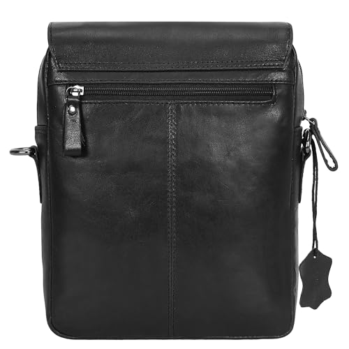 Pitaara Genuine Leather Crossbody Messenger Bag with Front Flap, Unisex, Full Grain Leather Shoulder Travel Bag, Tablet Bag