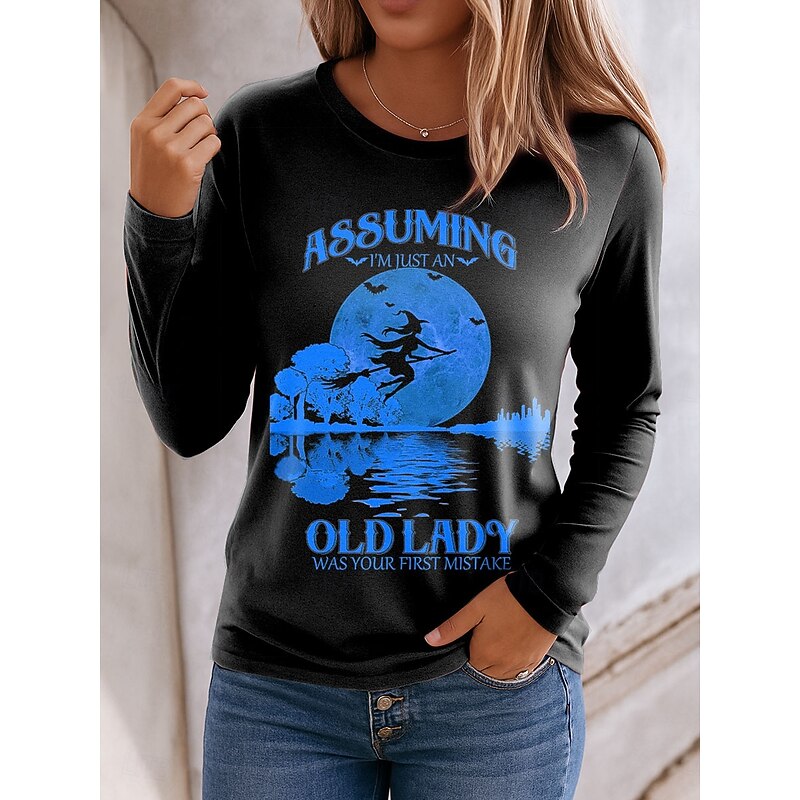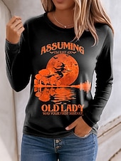 More information about Halloween Women's T shirt Witch Long Sleeve Crew Neck Long Sleeve Tunic Graphic Letter Vintage Stylish Classic Regular Tops Daily Print Yellow Pink Blue Orange Green Spring Fall Prefall