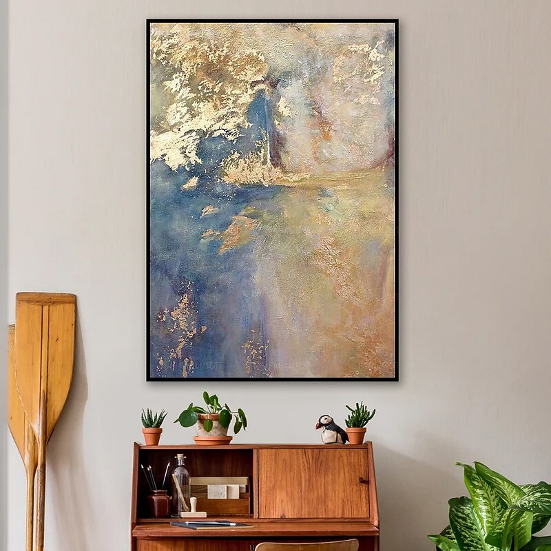 Large Size Oil Painting 100% Handmade Hand Painted Wall Art On Canvas Gold Purple Blue Cloud Abstract Modern Home Decoration Decor Rolled Canvas No Frame Unstretched 1