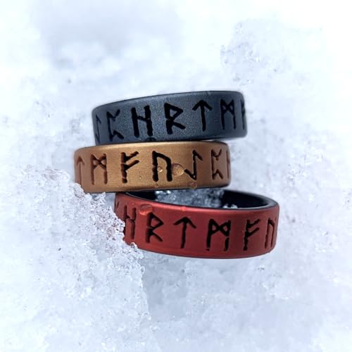 HOT ! Knot Theory Rune Silicone Ring for Men - Cosmic Purple, Dark Silver, Metallic Blue, Smooth Silver - Dual Layer Engraving - Breathable Comfort Fit 6mm Rubber Wedding Band
