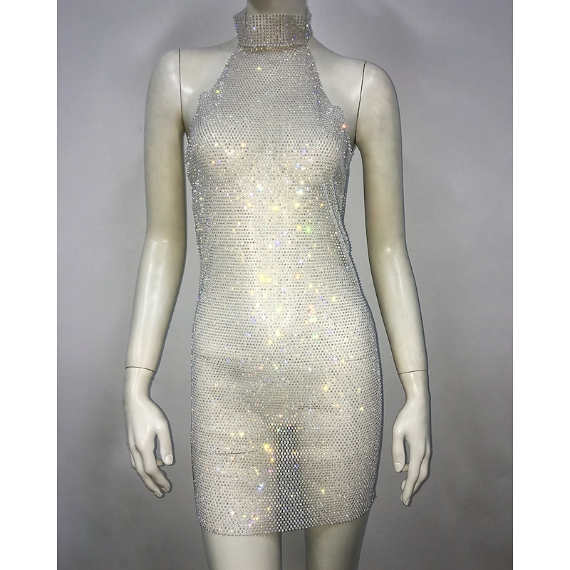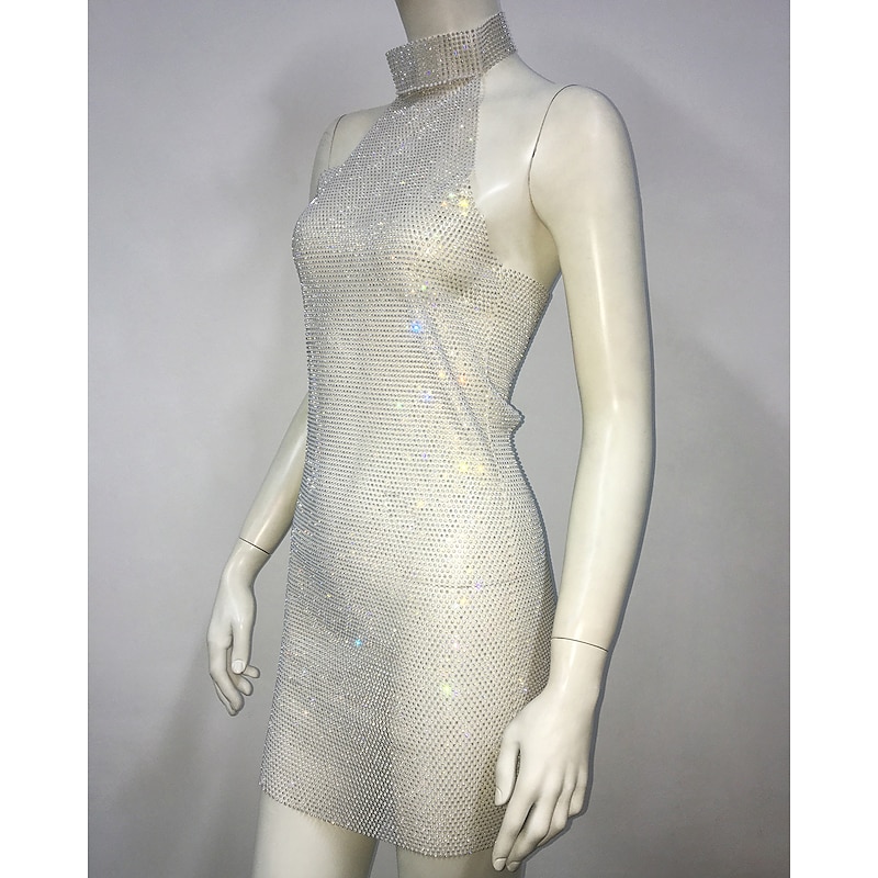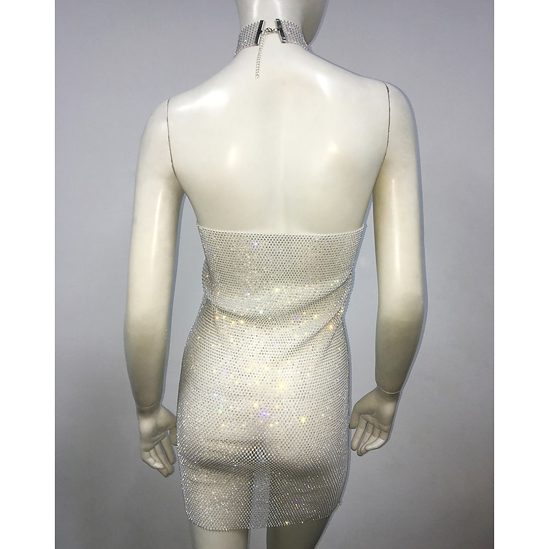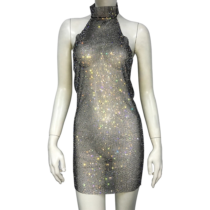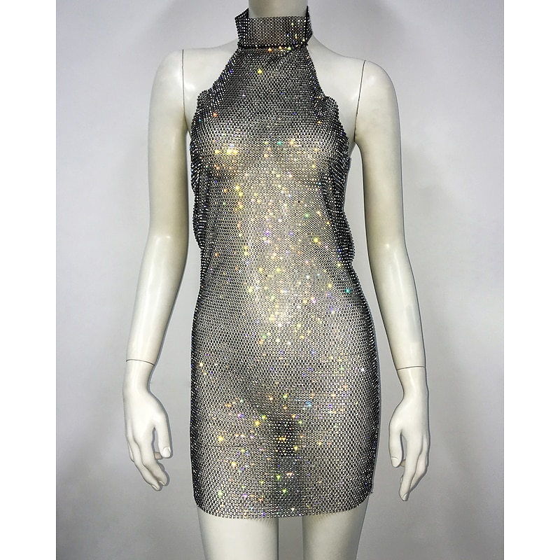 More information about Metallic Backless Sparkle Body Chain Mini Dress Disco Solid Color Halter Neck Fancy Dress Women's Party Club Adults' Dress