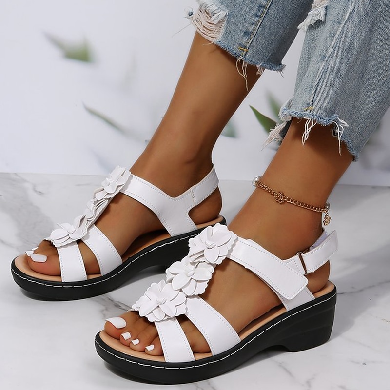 Highlights [Fabric & Material] : Made from high-quality PU leather and polyester, these sandals offer a comfortable and luxurious feel, perfect for summer wear. The soft, suede-like texture gives an elegant appearance while ensuring durability. [Design & Style] : Featuring a stylish open-toe design with a wedge heel, these navy blue floral sandals are adorned with decorative floral embellishments, adding a feminine and sophisticated touch. The classic and casual style makes them versatile for various outfits. [Design Highlights] : The sandals boast an open-toe style complemented by a secure ankle strap and a sturdy buckle closure for a comfortable fit. The thick sole provides enhanced support and stability, and the subtle floral patterns offer a playful yet refined element. [Occasions] : Ideal for daily wear, outdoor activities, beach trips, and casual walking, these sandals are suitable for a variety of summer events. Whether you're on a relaxed weekend outing or attending a casual gathering, they complement both casual and semi-formal ensembles. [Size Range] : Available in a wide range of sizes from US6 (EU36, UK4) to US10.5 (EU42, UK8.5), these sandals cater to fashion-forward individuals looking to add a unique piece to their footwear collection, ensuring a perfect fit for comfort and style.