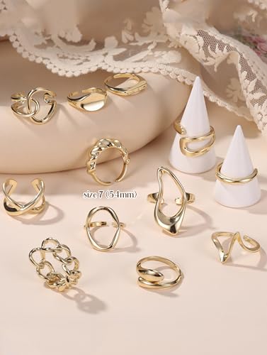 THUNARAZ 12 PCS Stackable Gold Rings for Women Adjustable Open Chunky Rings,14K Gold Plated Twisted Round Signet Rings for Gift 7
