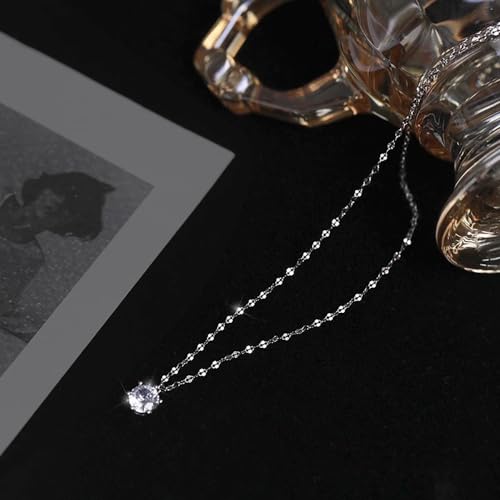 HOT ! 14K White Gold Plated Necklaces, Dainty Simulated Diamond Choker Necklace, CZ Simple Silver Chain, Trendy Silver Pendant Jewelry Gifts for Women