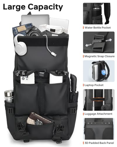 • 【Expandable Storage Rolltop Backpack Design】This rolltop backpack offers ample storage space for your travel needs. With the ability to expand 2.5 inches on the sides and an adjustable roll-top closure, you can easily increase your capacity to approximately 30 liters, accommodating everything from daily essentials to weekend getaway items