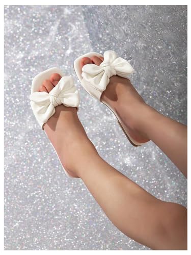 GORGLITTER Girl's Bow Slip on Sandals Square Open Toe Flat Sandals for Outdoors White 2 4