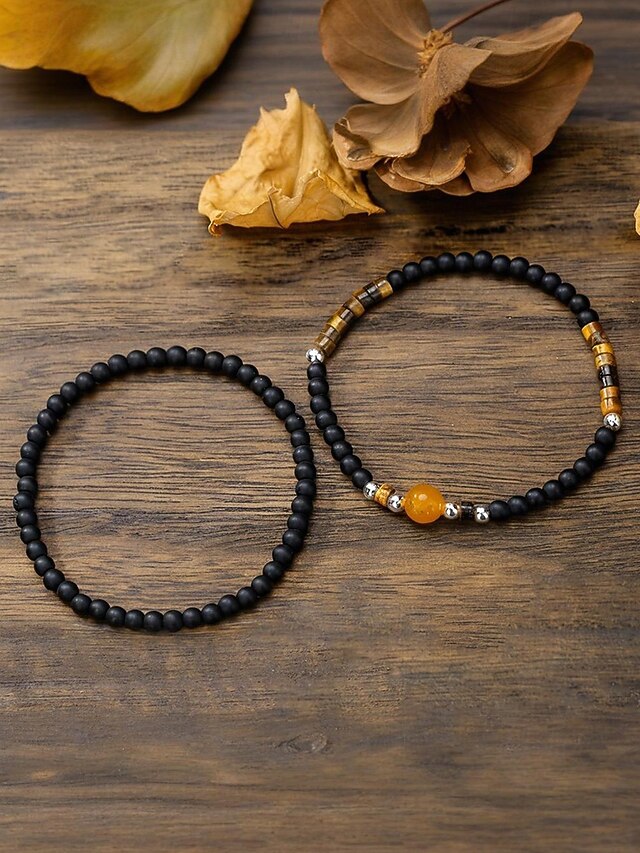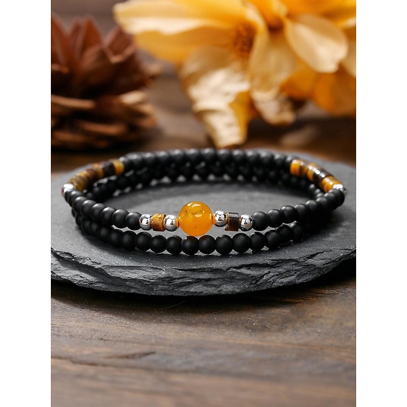 $9.99 - Men's Natural Stone Beaded Bracelet Set, Matte Black and Tiger Eye Beads with Yellow Accent, Minimalist Style for Business, Casual and Gift Occasions 2025. Shop for cheap Men's Jewelry online? Buy at lightinthebox.com on sale today!