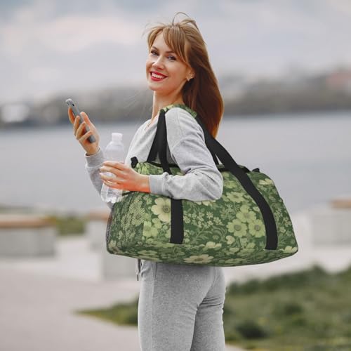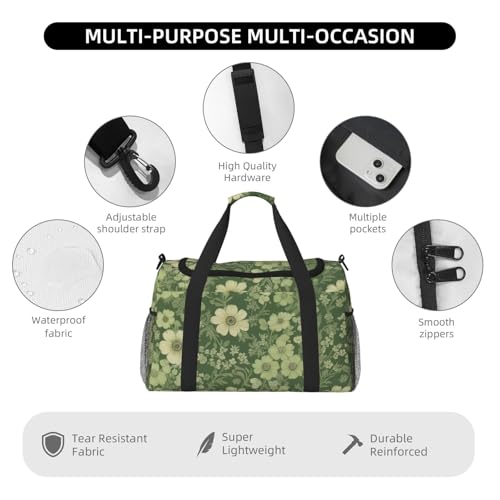 HOT ! Green Floral Print Travel Duffle Bag - Foldable Personal Item Travel Bag for Women & Men,Carry-On Convertible Crossbody Tote Bags with Adjustable Shoulder Strap & Pockets 13x10.2x19.7 in