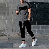 More information about Men's T-shirt Suits Shirt and Pant Sets 2 Pieces Outfits Short Sleeve Crewneck Summer Color Block Fashion Casual 2 Piece Vacation Daily Wear Going out Black White Yellow Top Tee for Men