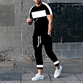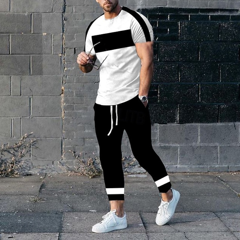 HOT ! Men's T-shirt Suits Shirt and Pant Sets 2 Pieces Outfits Short Sleeve Crewneck Summer Color Block Fashion Casual 2 Piece Vacation Daily Wear Going out Black White Yellow Top Tee for Men