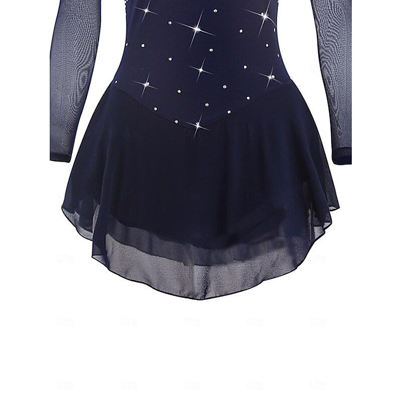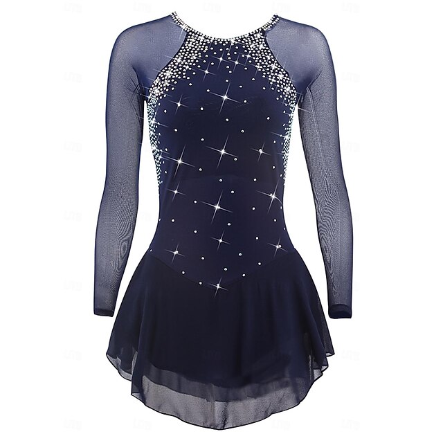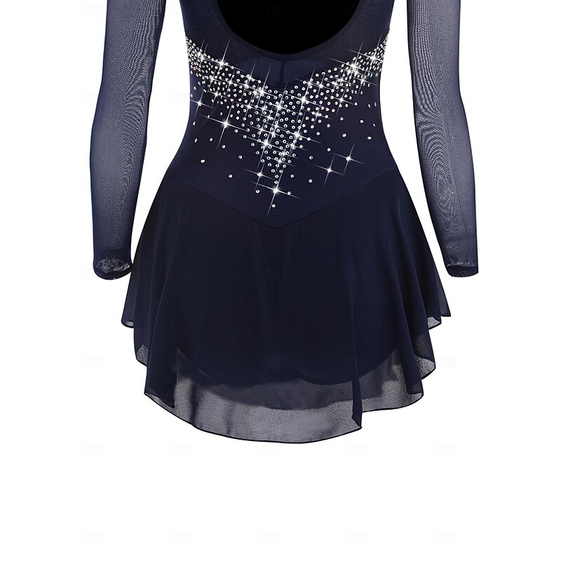 More information about Figure Skating Dress Women's Girls' Ice Skating Dress Dark Navy Patchwork Open Back Mesh Spandex Stretchy Training Practice Professional Skating Wear Crystal / Rhinestone Long Sleeve Ice Skating