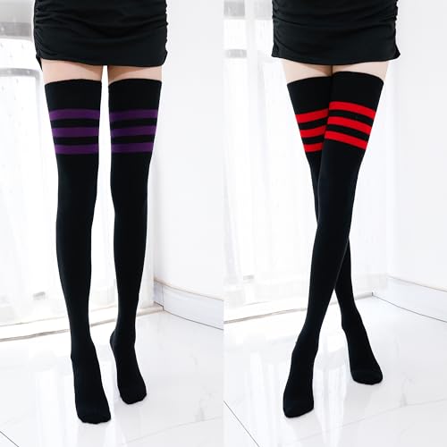 sizzling ! Kayhoma Extra Long Cotton Stripe Thigh High Socks Over the Knee High Plus Size Stockings…