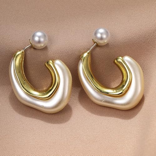 HOT ! Acrylic Open Hoop Statement Earrings for Women,Fashion Chunky Geometric Resin Double Sided C Earrings,Minimalist Pearl Open Hoop Earrings Jewelry