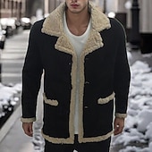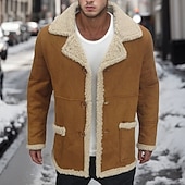 More information about Men's Winter Jacket Sherpa Jacket Vacation Daily Thermal Warm Pocket Fleece Winter Plain Fashion Streetwear Lapel Regular Black Yellow Red Coffee Jacket