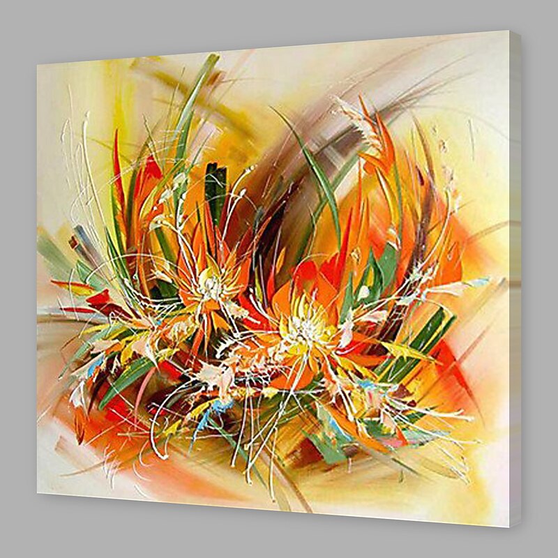 Oil Painting Hand Painted Square Floral / Botanical Modern Stretched Canvas 10