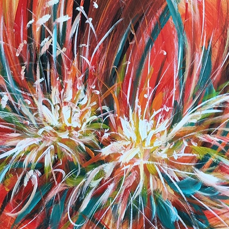 Oil Painting Hand Painted Square Floral / Botanical Modern Stretched Canvas 9