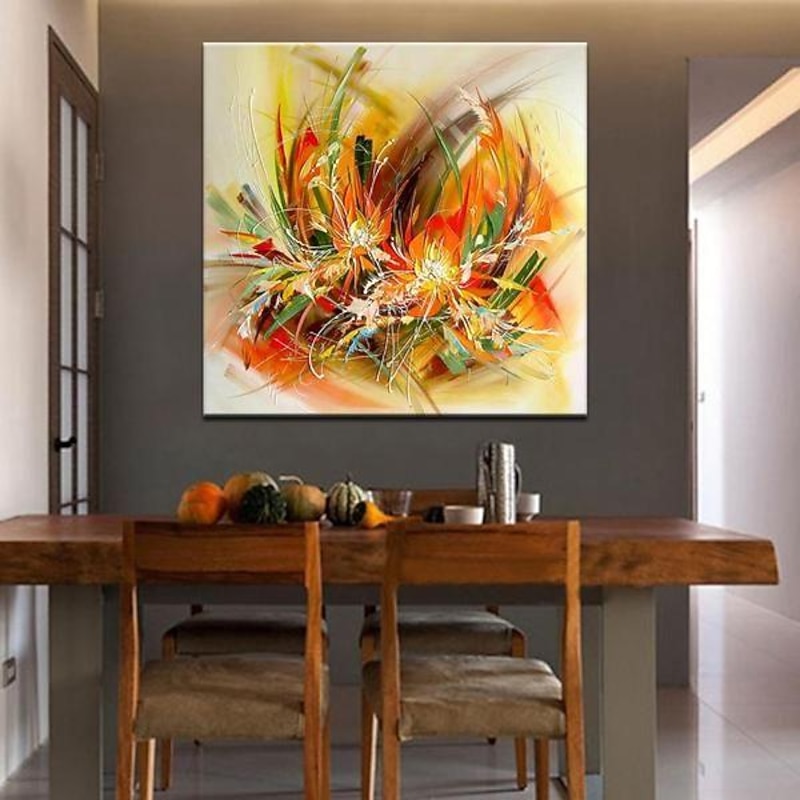 Oil Painting Hand Painted Square Floral / Botanical Modern Stretched Canvas 7
