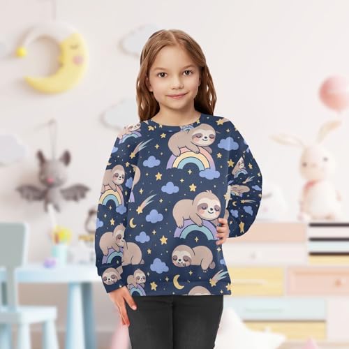 JUNZAN Dreamy Sloth Space Blue Little Girls Hoodie Sweatshirt Crewneck Fall Tops Shirts Athletic 4T 5