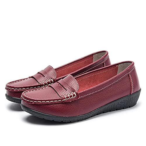 Hbeylia Women's Red Leather Slip On Loafers Fashion Casual Walking Shoes 4