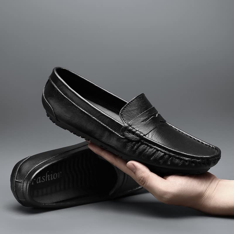 HOT ! Mens Loafers Penny Loafer Genuine Leather Stitching Details Round Toe Anti-Slip Comfortable Flat Heel Prom Slip-ons