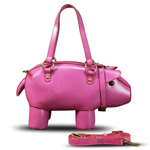 Genuine Leather Handbags for Women Cute Pig Shape Fashion Shoulder Bag Crossbody Bag Vintage Satchel Purses with Strap 5